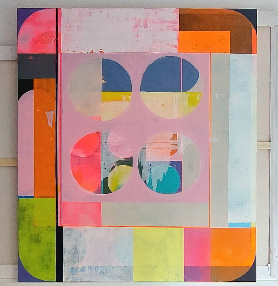 In einem freien, intuitiven Schaffensprozess werden Gefühle, Gedanken und unbewusste Impulse unmittelbar in Farben, Linien und Strukturen übersetzt. Schicht für Schicht wächst das Bild, ohne seine Anfänge zu verlieren. Kleine offene Bereiche geben Einblicke in seine Tiefe und lassen frühere Momente des Entstehens sichtbar bleiben.