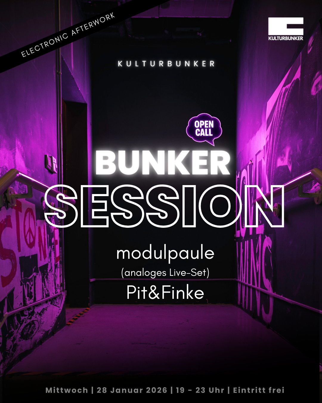 Ein neues elektronisches Afterwork Format im Kulturbunker mit Live Acts und DJs zwischen Experiment und Tanzfläche. Perfekt zum Ankommen, Abschalten und Dableiben.